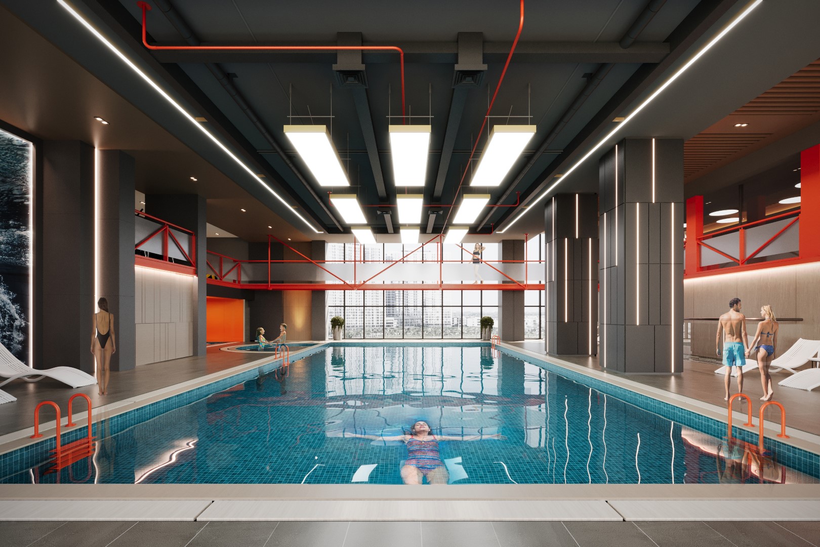 Đắm mình trong làn nước xanh mát của bể bơi bốn mùa.